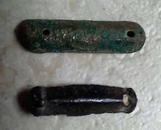 à tous , petites appliques en bronze d'environ 2 cm avec 2 trous sur chaque plaquette pour emplacement de rivet (reste un rivet) étaient elles rivetées sur des ceintures ou autres choses ? quelle époque ? merci de votre aide Théo