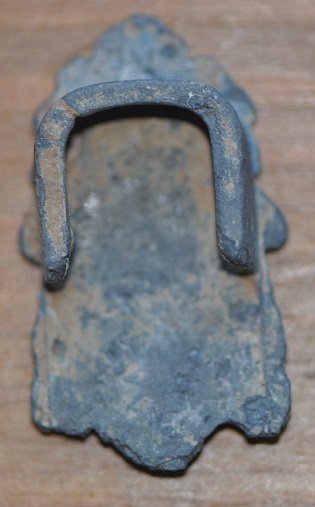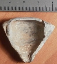 A force de taper sur des mots clés comme : objet triangulaire en plomb, je suis arrivé à un objet un peu dans le même genre et proposé comme un poids ( de tisserand ou autre ).