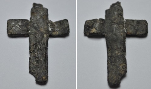 Au revers je distingue un 2ème personnage et aussi un gros point entourée de petit point à chaque extrémité de la croix