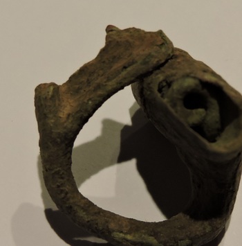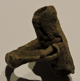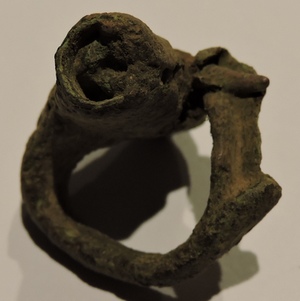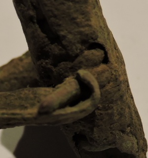 L’ardillon a peut être pété sur le vêtement du propriétaire... il s'est trouve con en voyant sa fibule ainsi et l'a pliée lui même, sans trop y croire, en se disant peut être que ça fera l'affaire pour aujourd'hui, et puis non... alors il l'a jeté, de toute façons, il en avait d'autres dans sa boite en bois. La fibule n'a plus bougé jusqu'au jour ou son lointain descendant se promena au même endroit...