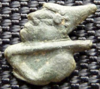 La paillette de Jluc est exactement la même que celle du DP n°65, voici ce qu'en disait Loïc: 'rare banquelet anthropomorphe. Il représente soit un soldat coiffé d'un chaperon, portant une épée (?) sur l'épaule, soit le roi des fous, coiffé d'un bonnet et portant le sceptre, ou bien un pèlerin, son bâton sur l'épaule'