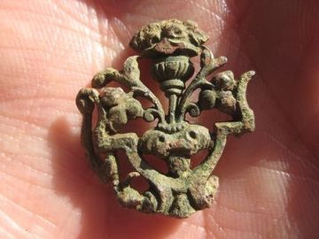 Je pense qu'il s'agit d'une petite applique décorative de meuble du 19ème. J'ai déjà posté le même objet mais là je suis au boulot et j'ai pas le temps de rechercher mon poste!
