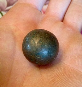 Voici après la monnaie, cette bille en bronze trouvée par l'agriculteur chez qui je prospecte !