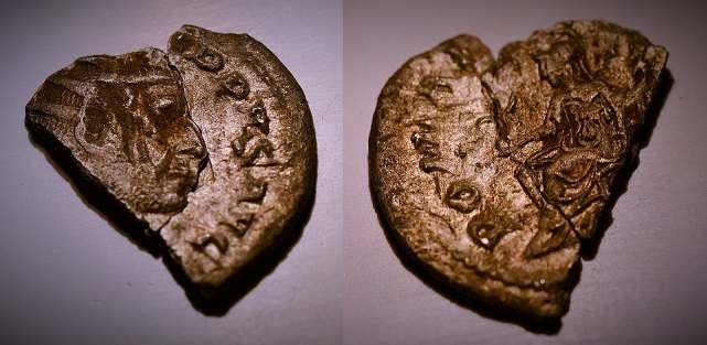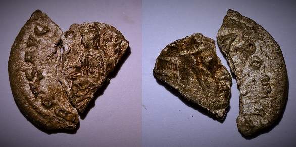 Voici une monnaie ( ou plutôt se qu'il en reste) en billon trouvé cet après midi.