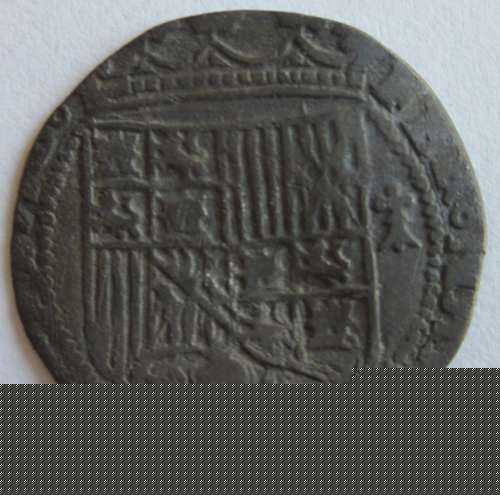 Laquich, oui très jolie monnaie, et qui a fait du chemin ! En R1, au-dessus, on voit un joug qui est le symbole de Ferdinand d'Aragon, et en dessous c'est un faisceau de flèches qui symbolise la reine Isabelle de Castille ; ces deux emblèmes sont liés par le ''nœud gordien'' que trancha Alexandre le Grand pour devenir le maître de l'Asie : c'est une allusion au fait que les Rois Catholiques avaient des visées sur l'Inde, notamment en finançant les voyages de Christophe Colomb.
