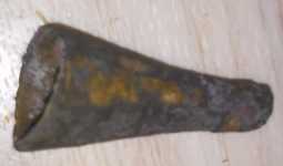 Au premier abord j'ai pensé à l'embout d'un bâton de marche, avec cette usure de la pointe, mais le mode de fixation m'échappe
