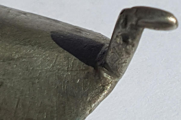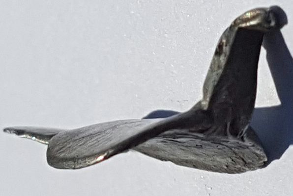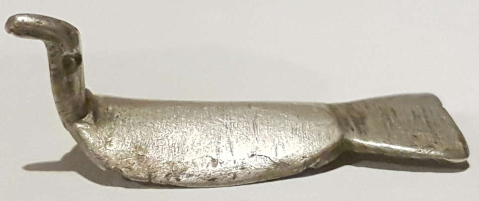 Pas facile. Ressemble dans sa forme générale à une fibule aviforme, en effet, mais je ne pense pas que se soit ça. Plutôt un objet inspiré de la même forme d'oiseau. Le dessous a l'air concave, c'est juste?
