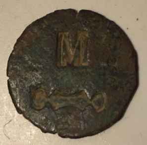 Jeton ?? ayant une patine de 2,5 cm de diamètre. La lettre M et un dessin en dessous. Rien de plus à l'arrière. Si quelqu'un en a déjà vu un comme celui la.