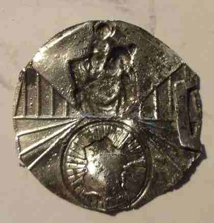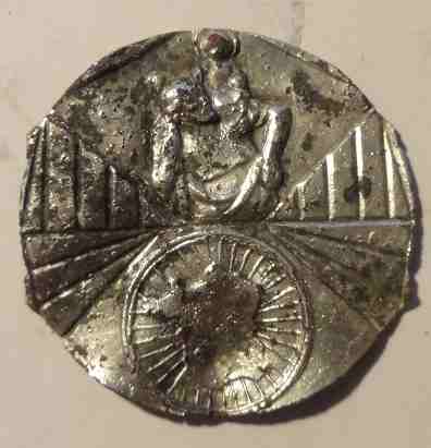 Avez-vous une idée de ce que çà peu être ? pour infos ça pèse 1.80 gr pour un diamètre de 30 mm. je précise qu'il y a comme un élément d'attache repliée du côté revers !