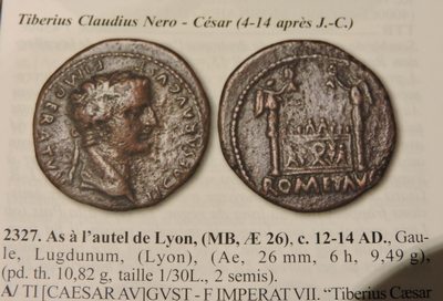 Peut-être un as de Tibere avec au revers l'autel de Lyon.