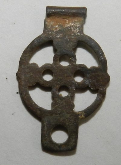 Besoin de vos lumières pour cet objet que je pense être un fermoir de livre (missel?),je pense qu'il est en étain,pèse 1,4 g,mesure 24mm par 16 .