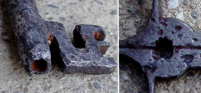 Je sais que cette forme de clef est autour du XVème, j'en ai une autre de cette époque mais elle n'est pas creuse au bout. Celle ci à un trou sur 3cm, alors je sais pas si il y a des clefs du XVème qui ont un trou au bout.