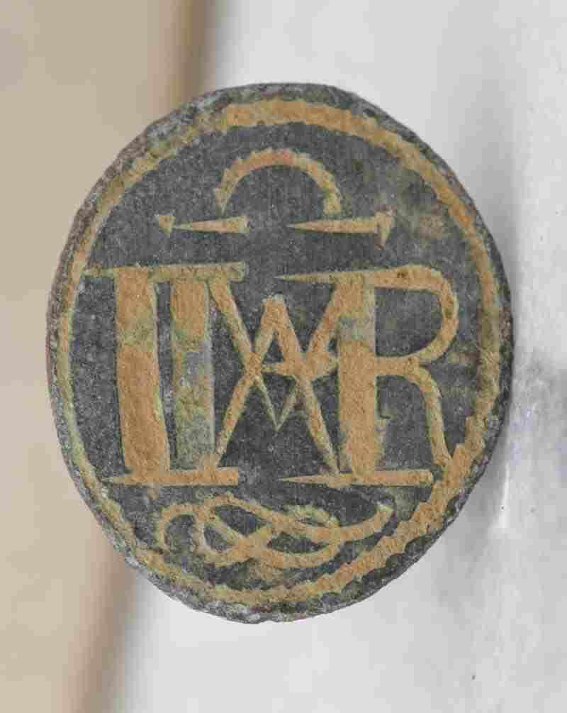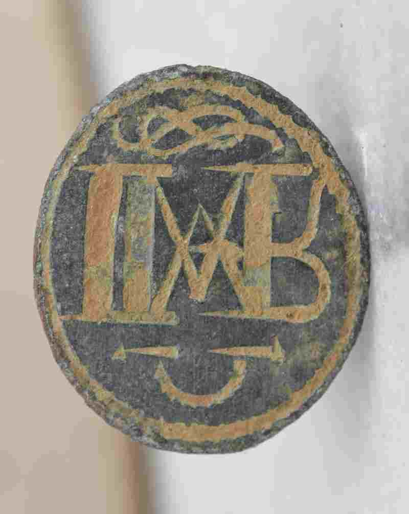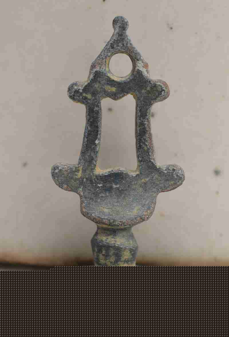 Bonjour à tous. Ça fait un bail que je n'avais pas piétiné les champs ! Petit objet trouvé isolé au beau milieu d'un chaume immense ... Quelle bonne surprise en ouvrant ma motte ! 30 mm de haut, matrice de 20 mm sur 26, bronze ou laiton ou cuivre, suis pas bien sûr. La facture me fait penser aux clefs de montre qu'on trouve souvent avec les napoléons 3. Je suis bien incapable de déchiffrer la matrice ... initiales ou rébus ? Pourriez-vous m'aider à lire ce sceau. Merci
