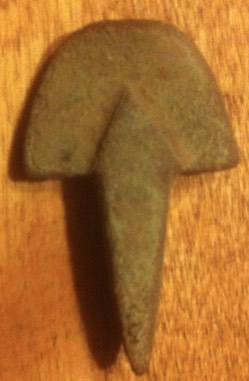 J'ai trouver cet objet de 34 mm qui semble avoir une soie de flèche mais avec ce coté palmer au bout..