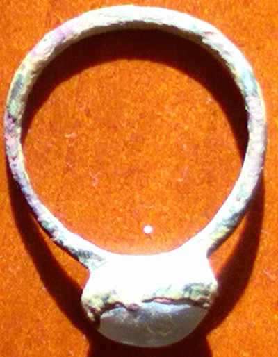 Selon une source fiable ( DP N° 77 de août 2008, page 10 ) bague en bronze à verroterie ronde sertie du 15 au 16eme siècle.