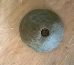 Une nouvelle demande d'id sur un des objets fortuité le weekend dernier en forêt. Un petit dôme perforé des deux côtés. DImensions : 2,6 cm de diamètreX1,4 cm de haut (base jusqu'au sommet du dôme) Métal : bronze