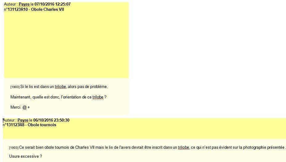 [1903] Ce serait bien obole tournois de Charles VII mais le lis de l'avers devrait être inscrit dans un trilobe, ce qui n'est pas évident sur la photographie présentée .