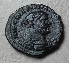 Oh Peuchère comme la si bien expliqué Toc c'est un follis de Maximien , à l'origine ces monnaies de bronze étaient saucées (recouverte d'une pellicule d'argent)