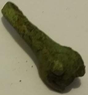 Salut les amies voila un petit objet trouvé cette aprem en cuivre ou bronze 3cm de long et 0.5cm de large si quelqu'un a une idée ??