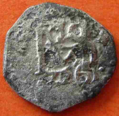 Il me semble que cette monnaie avec la date (1661, donc Felipe IV) sur le monogramme ne peut venir que d’un des ateliers de l’Amérique Latine, probablement de Potosi ou bien du Nuevo Reino de Granada (c'est-à -dire, de la Carthagène des Indes).