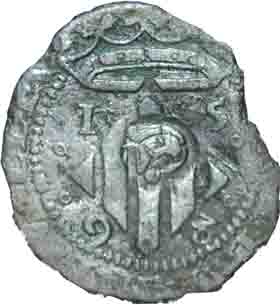 la monnaie à l'origine, etait un 2 sol de philippe II d'espagne..1556, 1598..