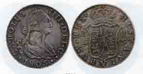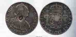 Et en revenant encore un siècle en arrière en Angleterre, durant le règne de George III (1760-1820) il y avait une production très limitée de monnaie, soit d’argent ou de bronze, et en 1804 fut autorisé le contremarquage des « pièces de huit », les reals espagnols de 8 reals, qui tenaient assignée la valeur de 4 shillings et 9 pence.
