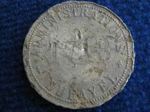 R/ ADMINISTRATIONS// DUFAYEL .: Légende circulaire. Au centre, en chiffres gravés : 1718( donc simple numéro d'identification de ce jeton