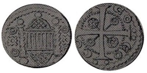 Avers : Dans un grènetis, bretèche accostée de deux colonnes torses se terminant