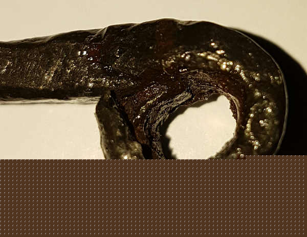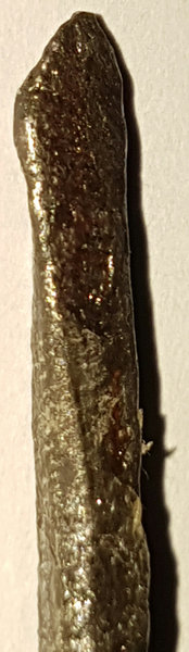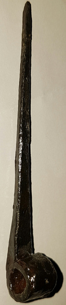 Ce n'est pas un clou ni une pièce de charpente car il y aurait du côté du rond des marques de coups qui indiqueraient que cela a été frappé .