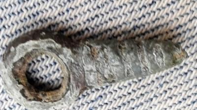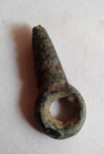 Pour moi ce n'est pas un filetage mais des striures parallèles... et l'objet pourrait être une pendeloque de l'âge du bronze...