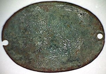 Il existait des plaques d'identité non homologuées, certaines frappées sur une monnaie, des circulaies, triangulaires e par exemple, c'est sans doute pourquoi elle n'est pas marquée du nom, numéro , ville de recrutement