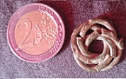 Il faudrait de bien meilleures photos des deux faces pour déterminer si l'objet en question est constitué, comme dans le cas du bouton, d'une chaînette enroulée, ou bien s'il a été moulé directement sous cette forme juste pour la prouesse technique, comme les rouelles-cage.