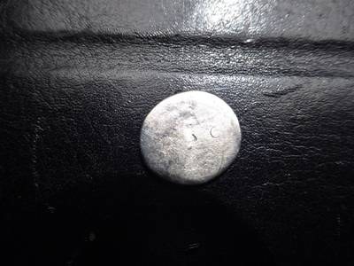 Voici une autre photo du revers à la lumière du jour si cela peut aider à l'identification, j'arrive à apercevoir une silhouette à gauche avec une sorte d'ailes et en face une sorte d'empreinte en forme de C