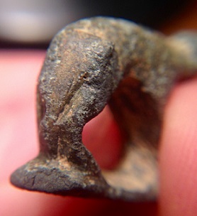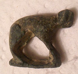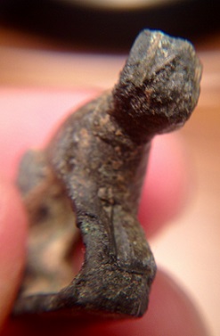 J'ai trouvé cet après midi dans l'ouest Lyonnais cette petite statuette (en plomb, il me semble) qui représente un animal...