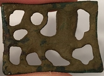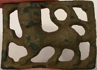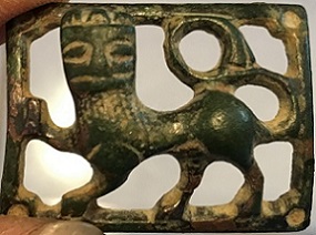 Trouvé à quelques mètres de l'ardillon mérovingien (précédent post, merci pour l'ID !!), cette petite applique avec probablement un 'lion' assez grossier, ce qui me fait penser que ce pourrait être assez ancien !