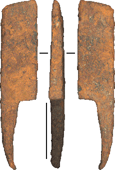 Le premier outil possède un crochet de suspension, pèse 285g et mesure dans ses plus grandes dimensions environ 17 x 3,5 x 1,3 cm. (L'échelle représente 5 cm).