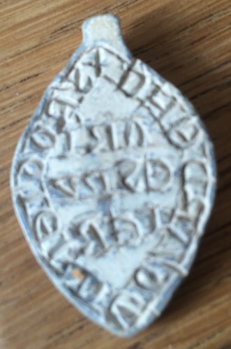 Voici un sceau en plomb trouve dans un champ du 27.il fait 37mm sur la longueur et 24mm sur la largeur pour un poids de 8,9g