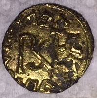 C'est pourquoi je n'ai pas affirmé la lecture du nom de ce monétaire connu pour Rodez .Tout au mieux ,on pourrait envisager le nom de ce monétaire écrit et gravé de façon dégénérée (ce qui est envisageable pour une monnaie fourrée ) .Mais il faudrait mieux lire les lettres en partie incomplètes.