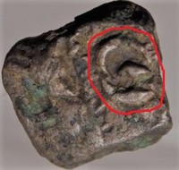 J'ai farfouillé un peu et je me dit que la partie que j'ai entouré en rouge sur la photo pourrait bien être un œil ou une oreille... Mais sans conviction aucune! Elle me cause bien du soucis cette monnaie!