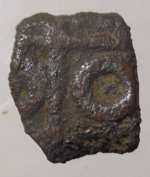 Elle présente un avers lisse et l'on peut voir une croix décentrée sur le revers. Les indices sont maigres... Je donne ma langue au chat!