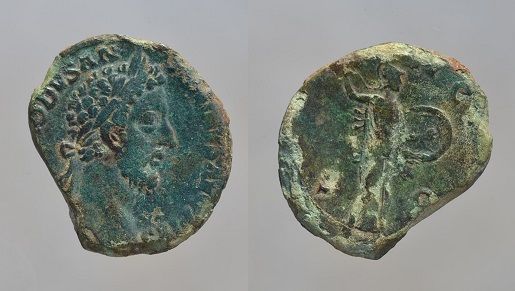 Je pensais Ă l'Ă©poque Ă un sesterce Ric.368b pour Commode sauf que le Ric.368b d'une part c'est un dupondius et il a la tĂȘte casquĂ©e.