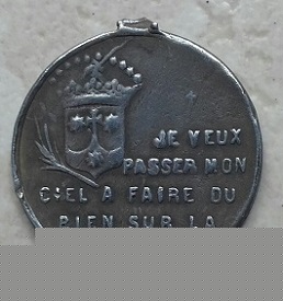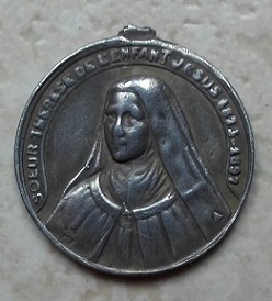 Toc et Lou , merci pour vos recherches , oui sans doute début 20 ème pour cette petite médaille ! De mon coté j'ai également fait des recherches et j'ai trouvé qu'elle existait aux archives du carmel de Lisieux , je pense par ailleurs qu'elle ne doit pas être récente car trouvée dans un champs ou j'ai également trouvé des boutons militaires , anneaux de toiles de tentes et balles de Lebel , je suppose qu'il devait y avoir un bivouac pendant la guerre 14 - 18 à cet endroit ! Peut être perdu par un soldat à cette période mais ce n'est que supposition ! @ bientôt et merci encore à vous 2 Théo.