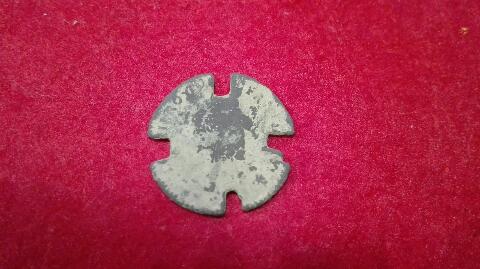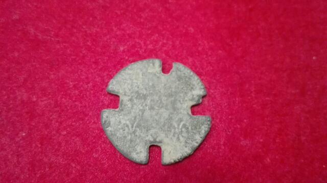 Les monnaies que j'ai pu voir transformées en boutons sont principalement des liards de France, mais aussi des six deniers Dardenne et même une dix francs Guiraud : mais habituellement le système d'attache du fil est différent et consiste en deux ou quatre trous percés au centre de la monnaie. Malgré cette différence je pense pour ma part que le réemploi de ta pièce en un bouton reste l'hypothèse la plus plausible.