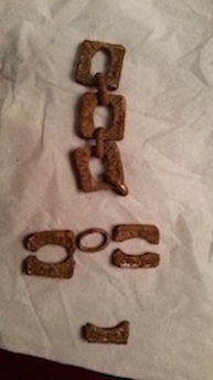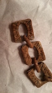 après plusieurs sorties infructueuses (difficile en ce moment), j'ai trouvé hier cet objet, malheureusement cassé, une petite chaine, avec des traits dessus. pouvez vous me dire ce que c'est, et de quelle époque?