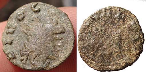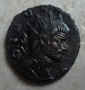 A l'avers on voit un buste avec une couronne radiée (type Tetricus).