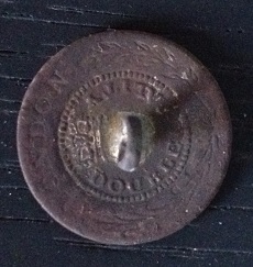 trouvé bouton 20 mm plat et lisse mais derriere marqué ' LONDON' 'double quality.'