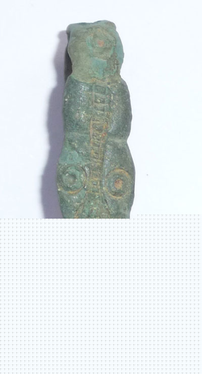 J'y verrais bien une fibule ansée mérovingienne à têtes de serpents, qui a perdu ses éléments d'attache et qui a bien morflé des suites d'un choc. Trouvée en champ?
