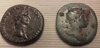 A gauche un as de Nerva et à droite un dupondius d'Hadrien , même diamètre !