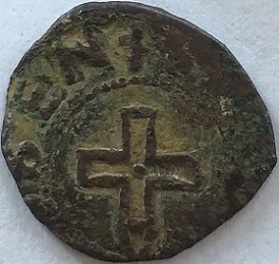 R/ :SIT:NOME:DNI:BEDITV..., croix pleine alésée; au-dessous, différent d'atelier.