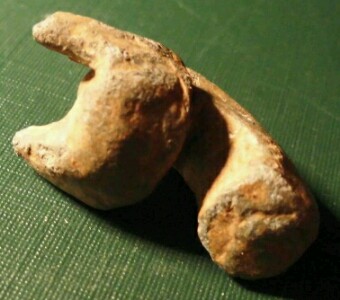 J'ai un peu plus d'infos, il mesure au plus long 2 cm et pèse 9 grammes. Ça serait du plomb. Je vous poste cette deuxième photos mais il ne m'a pas transmis mieux dsl